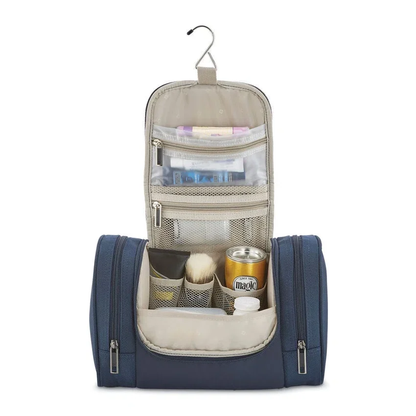 Das NuRoad Hanging Travel Kit ist ein perfektes Kulturbeutel-Set, das dank seines Metallhakens zum Aufhängen und zusätzlicher Staufächer Platz auf dem Waschtisch spart.