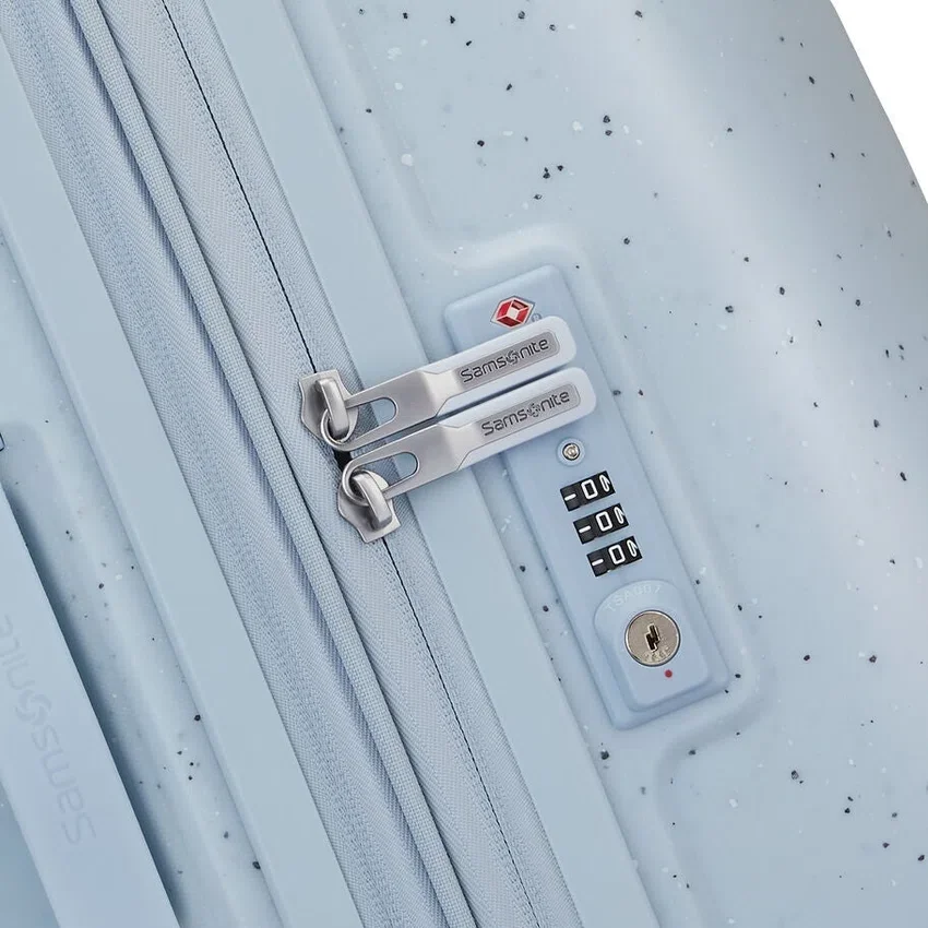 - Dieses elegante und schlanke Modell ist startklar – und lässt keine Wünsche offen: vom geformten Trolleygriff bis hin zu den leicht zu greifenden Griffen an Oberseite und Seiten. Mit integrierten Extras wie einem eingebauten TSA-Schloss sowie einem äußerst anpassungsfähigen Innenraum, der mit unserem umweltbewussten Recyclex®-Gewebe ausgekleidet ist, verbindet dieses unverzichtbare Reiseutensil Form und Funktion auf perfekte Weise.