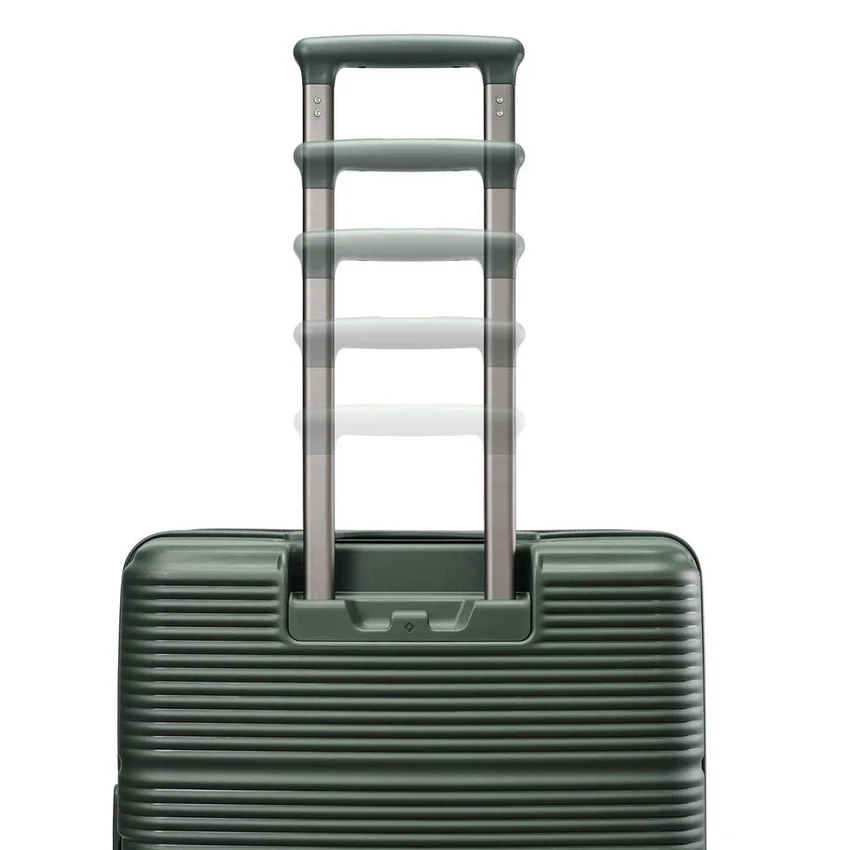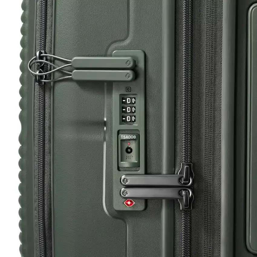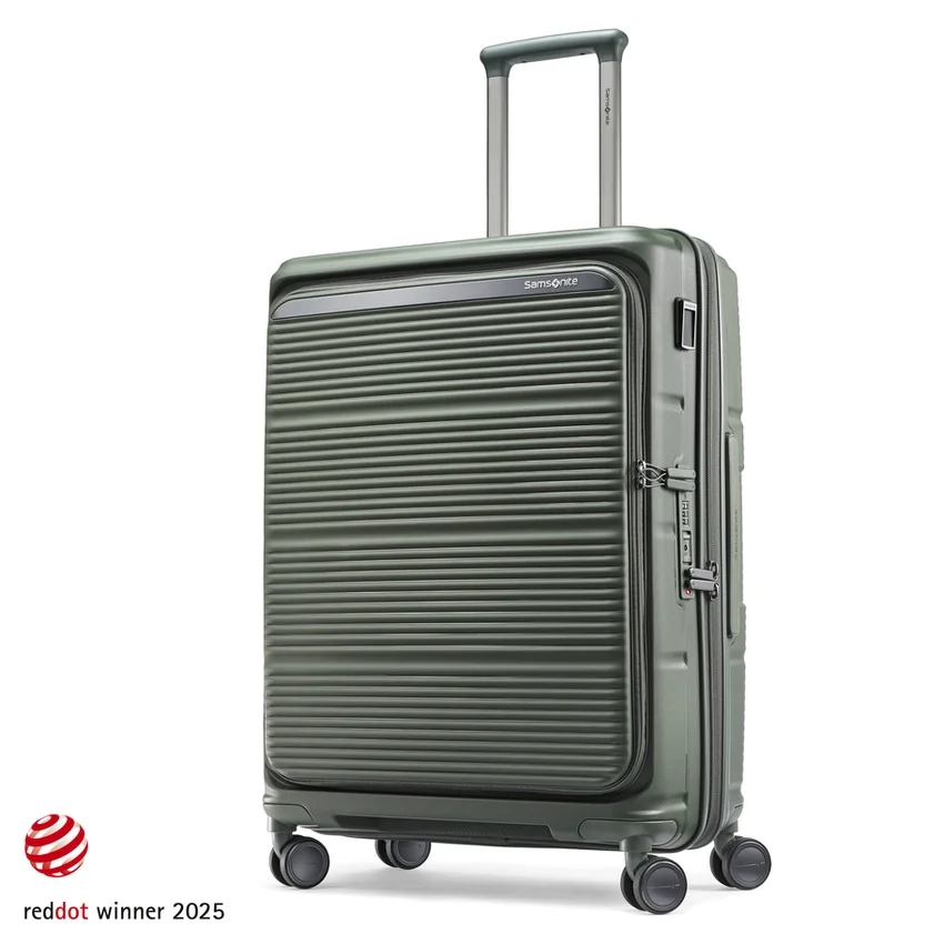 Der aus extrem strapazierfähigen und nachhaltigen Materialien gefertigte Medium Spinner lässt sich wie herkömmliches Reisegepäck in der Mitte öffnen und verfügt über eine zweite Frontklappe, die ein vollständiges Be- und Entpacken ermöglicht, wenn der Platz am Boden begrenzt ist.