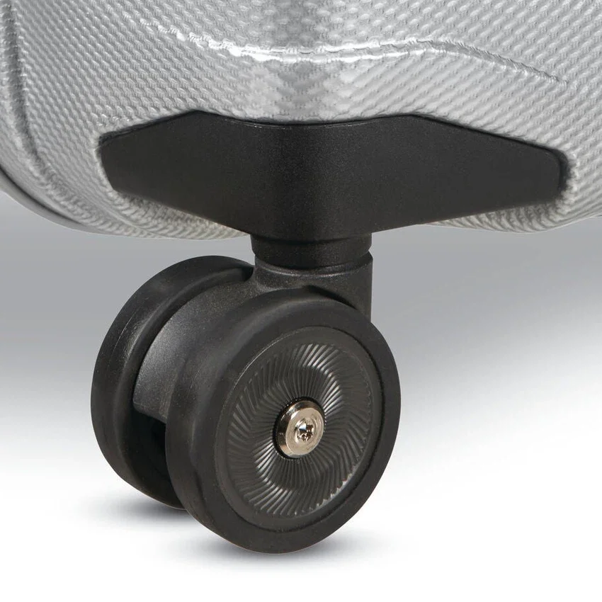 Nehmen Sie Proxis-Reisegepäck auf Ihre nächste Reise mit, um sicher und stilvoll zu reisen. Die Roxkin™-Außenschale bietet bemerkenswerte Festigkeit und Widerstandsfähigkeit in einem mehrschichtigen, leichten Design, das Sie nur bei Samsonite finden. Der ergonomische Griff, die doppelten Spinner-Rollen, das TSA-konforme Schloss und der integrierte USB-Anschluss sorgen für zusätzlichen Komfort und bieten Ihnen alles, was Sie unterwegs benötigen.