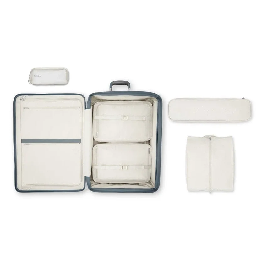 Der große Hartschalen-Spinner, speziell aus 100 % Polycarbonat gefertigt, enthält einen flach zusammenlegbaren Schuhbeutel und herausnehmbare Packwürfel, die gleichzeitig als Kompressionspanel dienen, um Ihre Kleidung ordentlich und wichtige Gegenstände gut organisiert zu halten.