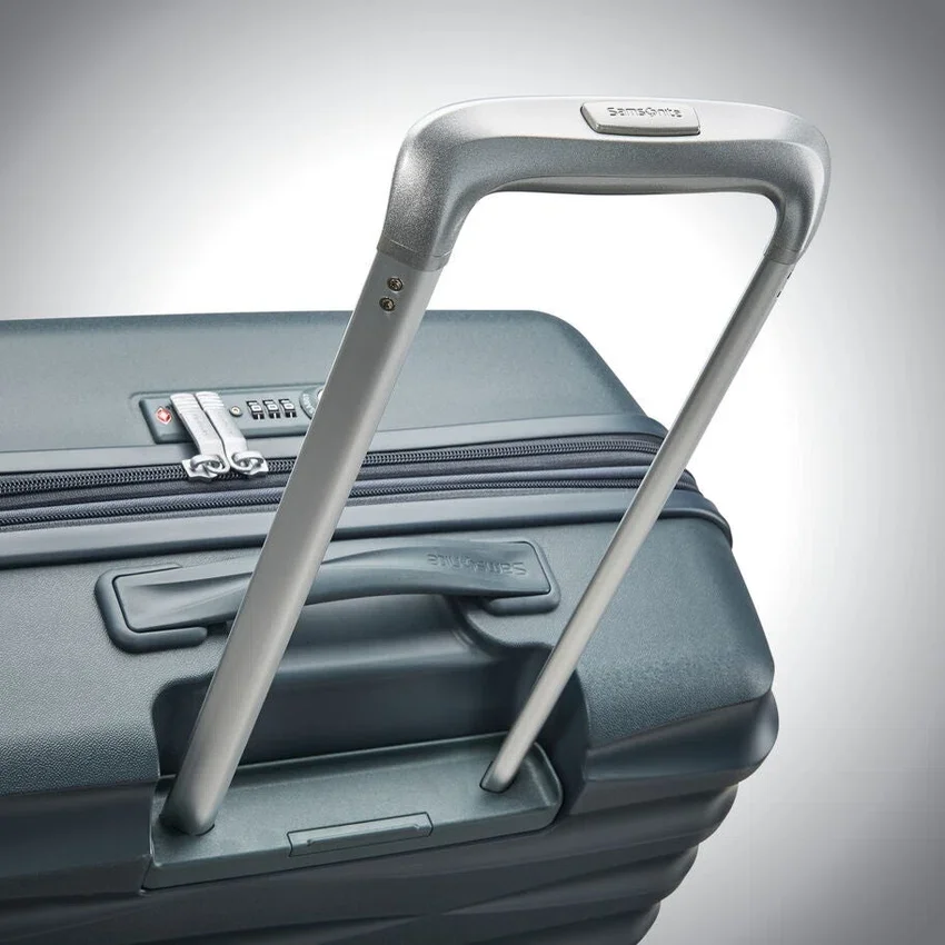 Selbst einziehende seitliche Tragegriffe liegen bündig am Koffer an, um vor Beschädigungen zu schützen