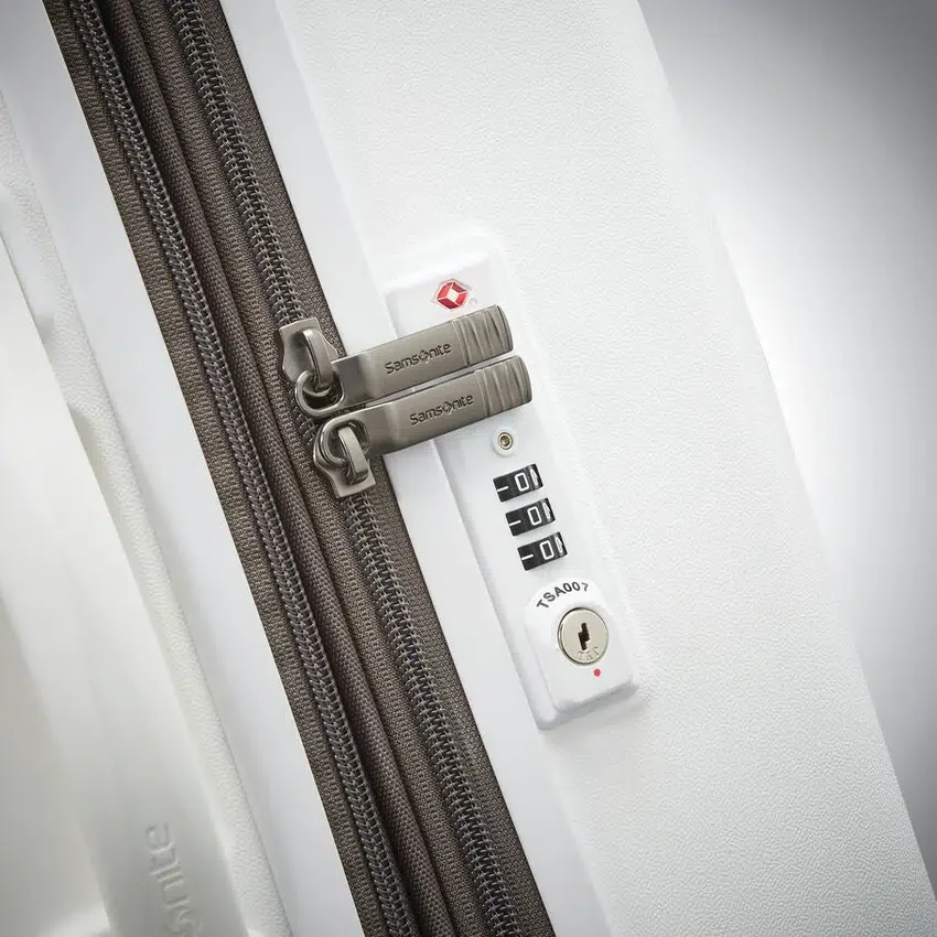 Laden Sie Ihre Geräte am Handgepäck-Spinner über einen USB-Anschluss auf, der in das TSA-zugelassene Schlossfeld integriert ist (Akku nicht im Lieferumfang enthalten)