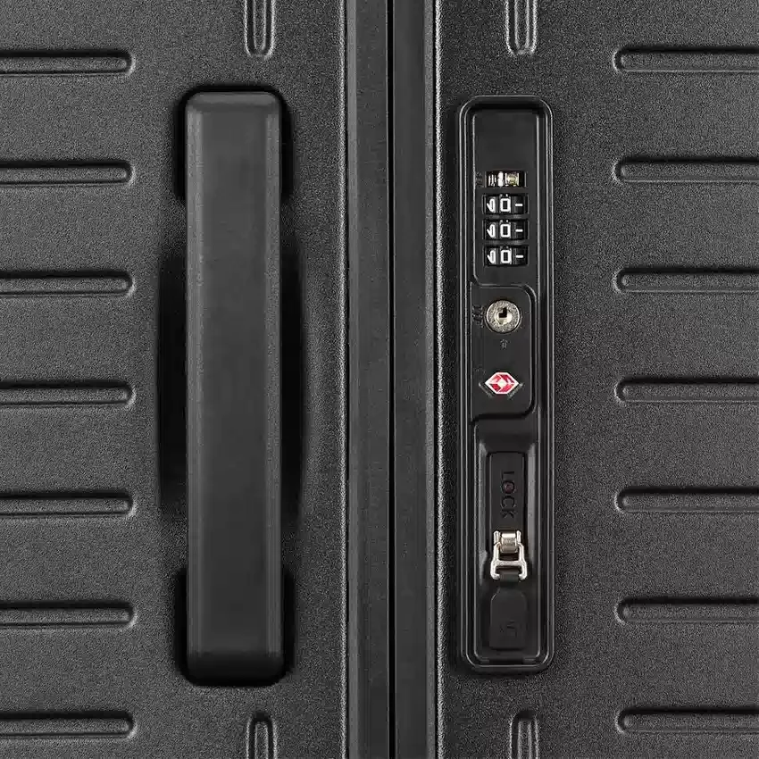 - Mit seinem raffinierten Design, moderner Funktionalität und einer leichten, reißverschlusslosen Konstruktion hebt sich Ihr Framelock Max von dem unkonventionellen Reisegepäck ab, an das sich die Branche gewöhnt hat. Die innovative und robuste Rahmenkonstruktion verfügt über einen hochsicheren Eazylock™-Mechanismus, der sich zum Ver- und Entriegeln einfach über einen zentralen Schieberegler bedienen lässt.