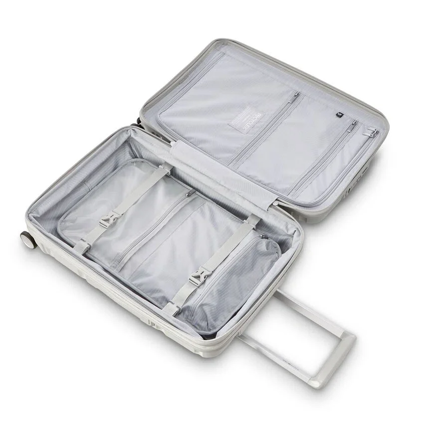 - Dieses elegante und schlanke Modell ist startklar – und lässt keine Wünsche offen: vom geformten Trolleygriff bis hin zu den leicht zu greifenden Griffen an Oberseite und Seiten. Mit integrierten Extras wie einem eingebauten TSA-Schloss und USB-Anschluss sowie einem hervorragend anpassbaren Innenraum, der mit unserem umweltbewussten Recyclex®-Gewebe ausgekleidet ist, verbindet dieses unverzichtbare Reiseutensil Form und Funktion nahtlos miteinander.