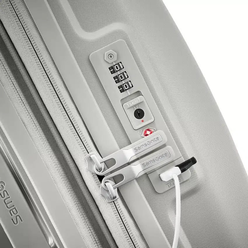 Eingebautes TSA-Schloss mit integriertem USB-Anschluss (nur bei Handgepäck) und internem Batteriefach