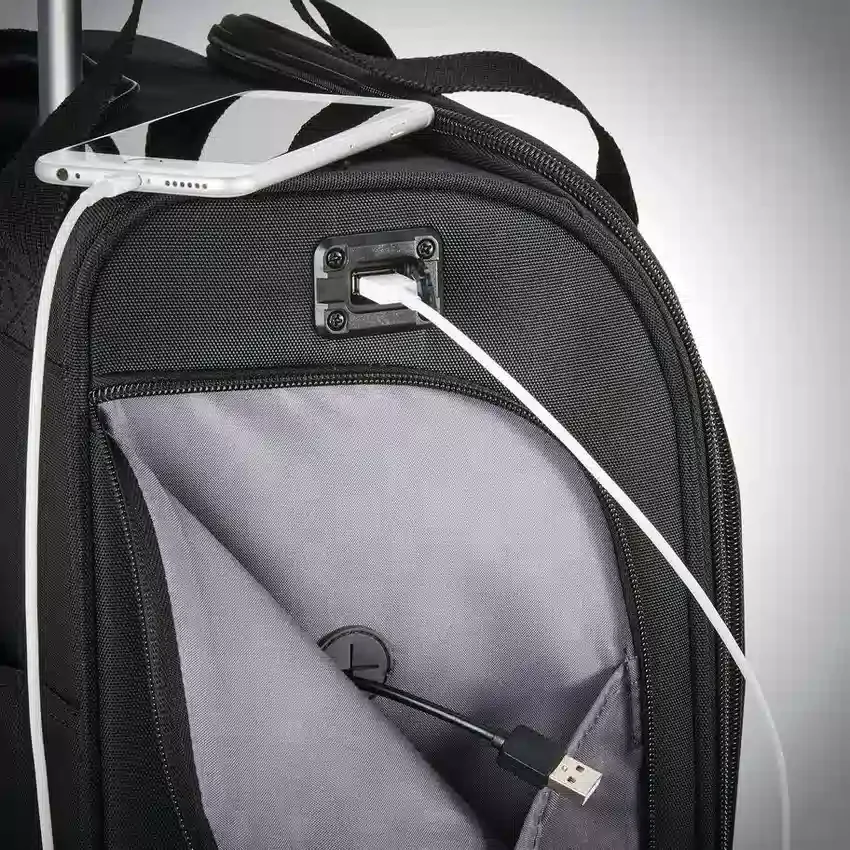 Der Samsonite Spinner Underseater mit USB-Anschluss verfügt über 360°-Spinner-Rollen und intelligente Stauräume, damit Ihre wichtigsten Utensilien immer mit Strom versorgt, gut organisiert und griffbereit sind.