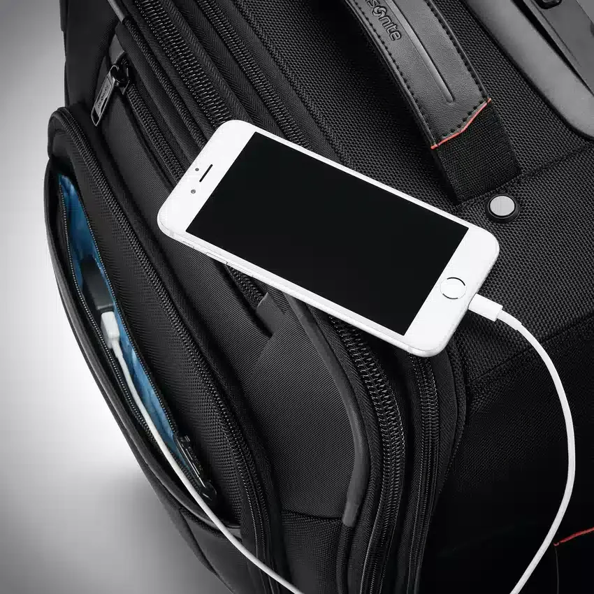 Wenn Sie aus dem Koffer leben, kommt es auf die Details an. Stecken Sie Ihr Smartphone in die zum Patent angemeldete Tasche, und es wird kabellos aufgeladen. Schützen Sie Ihre Daten mit der RFID-Tasche. Hängen Sie Kleidung ordentlich in den dreifach faltbaren Kleiderhalter. Und verstauen Sie Flüssigkeiten in der Wetpak™-Tasche. Alles in einer strapazierfähigen und dennoch eleganten Tasche.