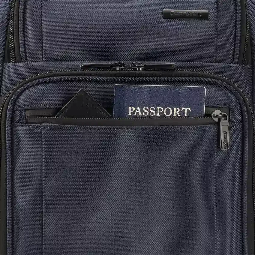 Die untere Fronttasche bietet viel Stauraum: Schlüsselhalter, mehrere Einsteckfächer, eine Netztasche mit Reißverschluss und 2 Stifthalter.