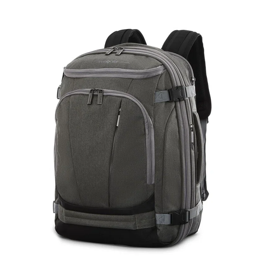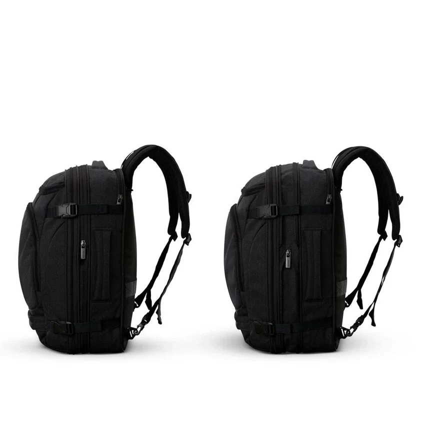 Dieser Rucksack verfügt über zahlreiche Taschen, die innen und außen strategisch platziert sind, sodass alles seinen festen Platz hat. Er lässt sich nicht nur leicht organisieren, sondern ist dank externer Kompressionsriemen auch erweiterbar, sodass Ihr Lieblingsrucksack immer noch in das Gepäckfach über dem Sitz passt.