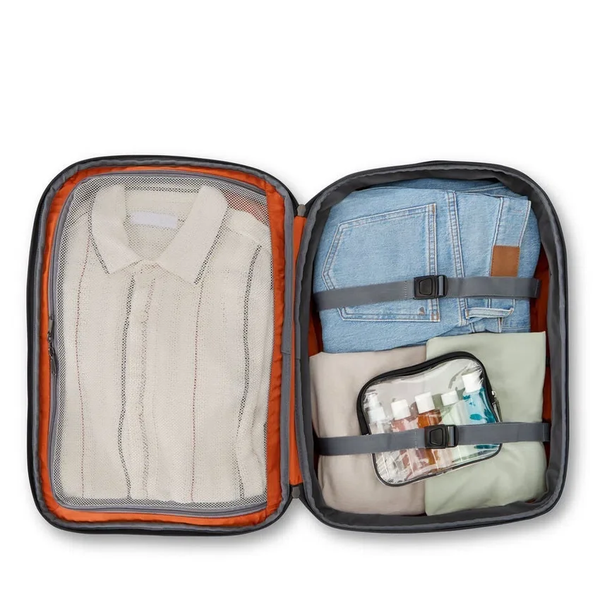 Dieser Rucksack verfügt über unzählige strategisch platzierte Taschen innen und außen, sodass alles seinen Platz hat. Er lässt sich nicht nur leicht organisieren, sondern ist dank externer Kompressionsriemen auch erweiterbar, sodass Ihr Lieblingsrucksack immer noch in das Gepäckfach über dem Sitz passt.