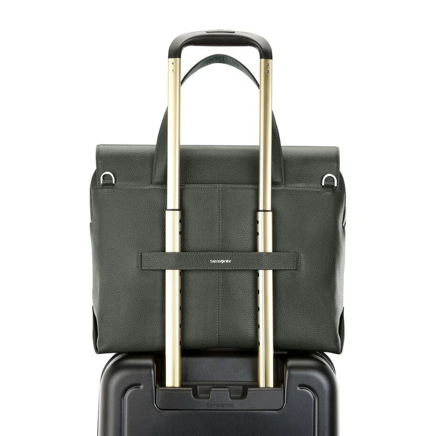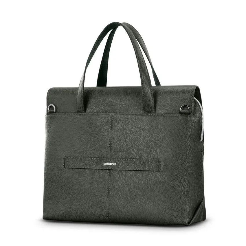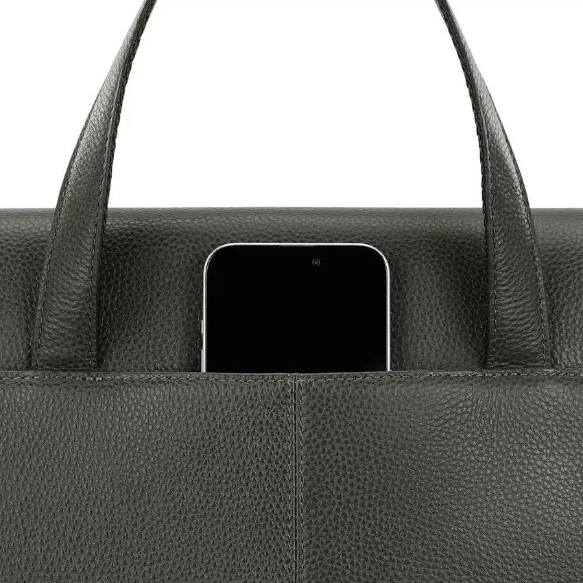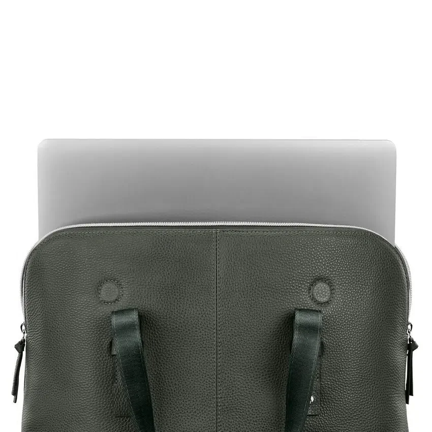 Die wandelbare Lederaktentasche verfügt über ein gepolstertes Laptopfach, eine Innenaufteilung mit Reißverschlusstasche und Fächern sowie einen diskreten Stackit™-Gurt. Die Reißverschluss- und Magnetverschlüsse am Hauptfach bieten Vielseitigkeit und Sicherheit.