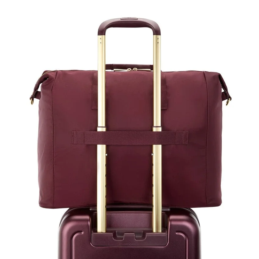 Die Reisetasche verfügt über ein gepolstertes Laptopfach, Innen- und Fronttaschen mit Reißverschluss und Organizer, einen abnehmbaren Schultergurt sowie einen Stackit™-Gurt zur einfachen Befestigung an Ihrem Reisegepäck.
